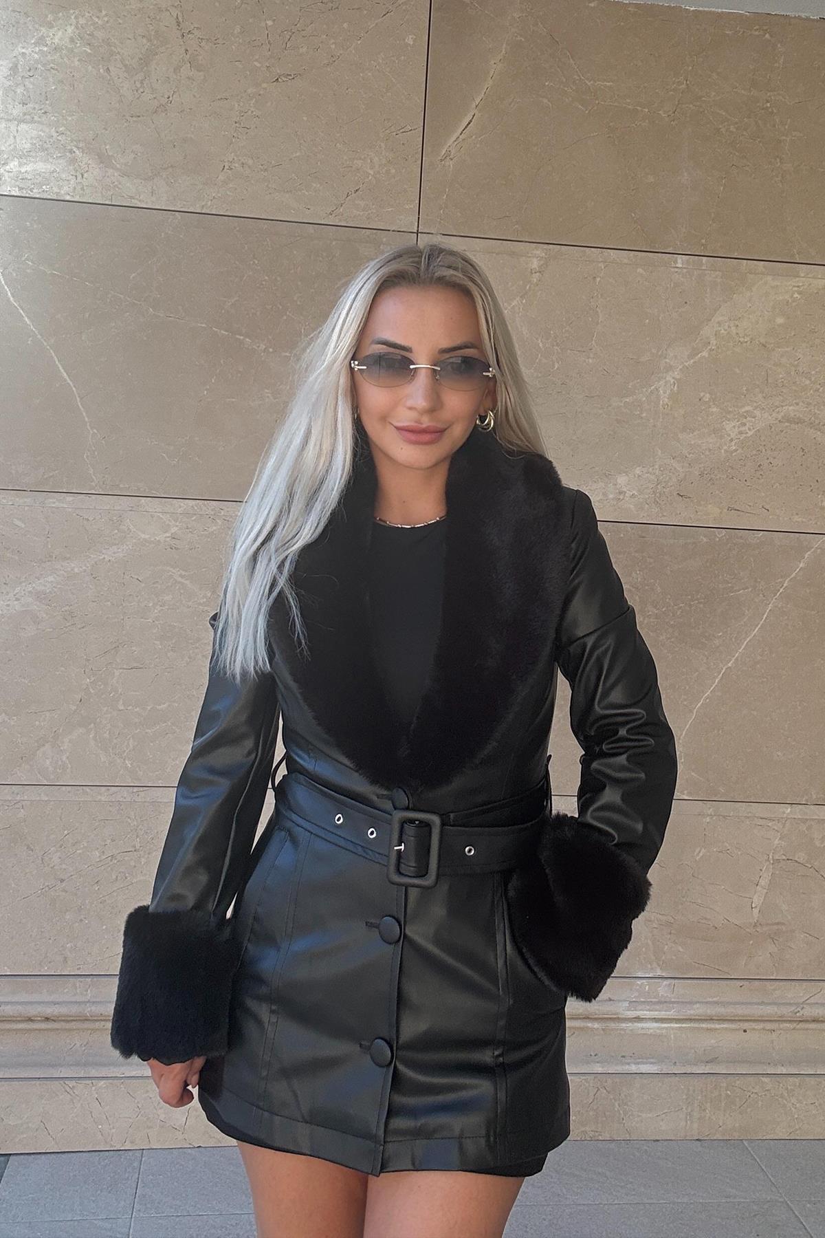 İthal Yakası Kolları Kürklü Siyah Deri Kadın Ceket, soğuk mevsimlerde bile şıklığınızdan ödün vermek istemeyen kadınlar için ideal bir yatırımdır. Bu ceketle, her girdiğiniz ortamda bakışları üzerinize çekecek, kendinize güvenen ve iddialı bir duruş sergileyeceksiniz. Kışa hazırlık yaparken, stilinize güç katacak bu eşsiz parçayı sepetinize eklemeyi unutmayın.